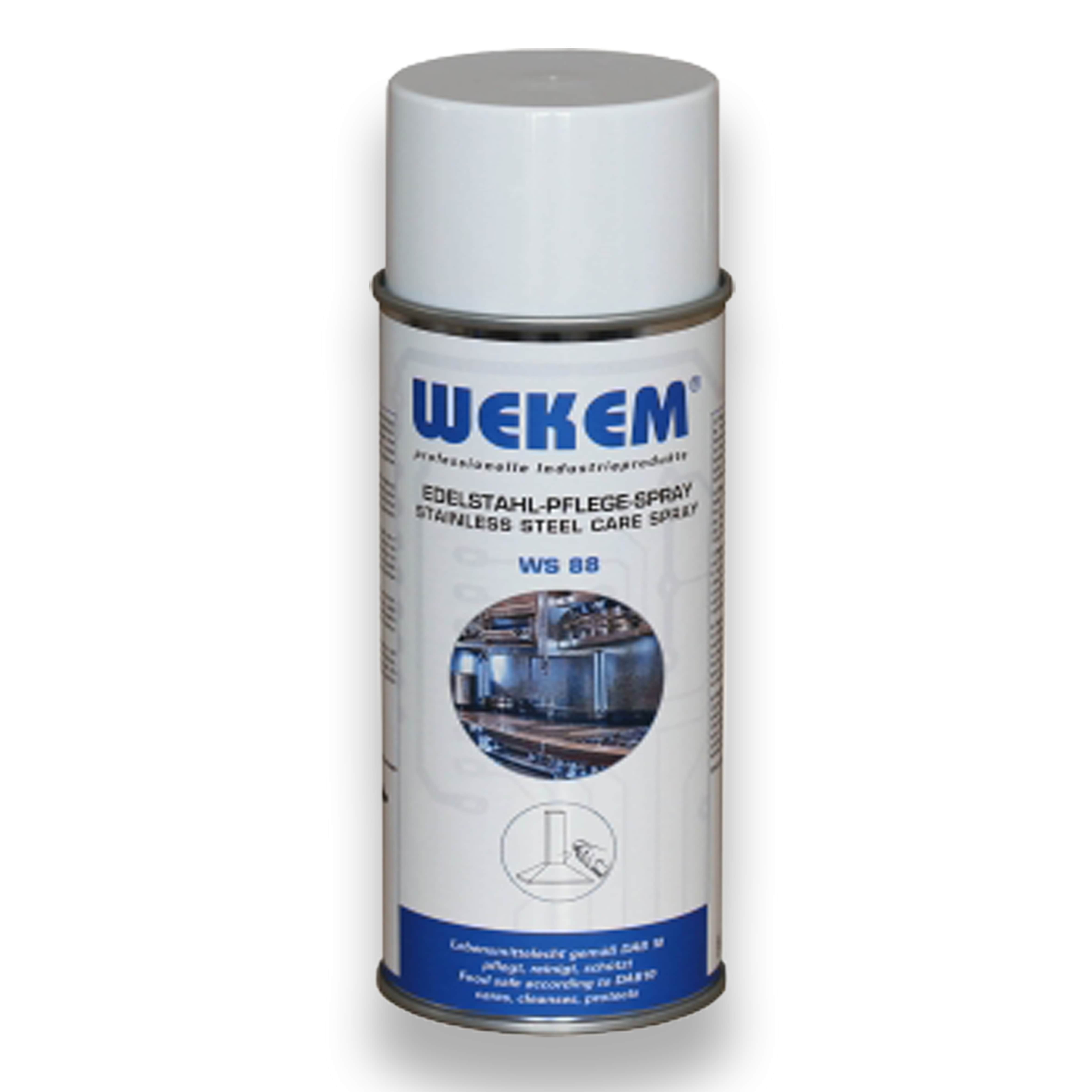 WEKEM WS-88 Edelstahlreiniger und Pflege ist ein professionelles Pflege- und Reinigungsspray für alle glatten Edelstahloberflächen. Es reinigt, pflegt, konserviert, schützt und versiegelt in einem Arbeitsgang und sorgt für ein dauerhaft gepflegtes Erscheinungsbild von Edelstahlflächen im Gastro-, Gewerbe- und Objektbereich.