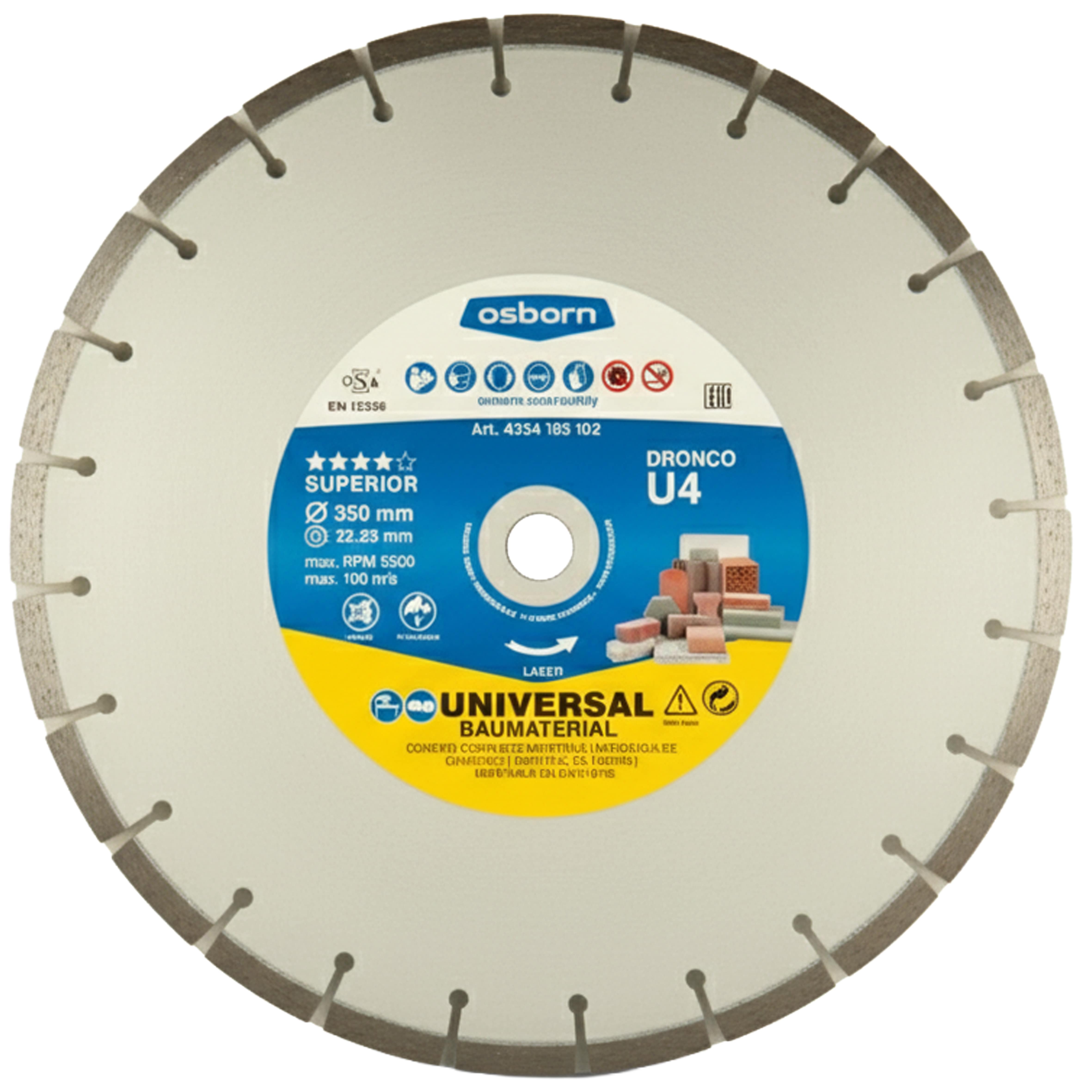Die Osborn Dronco Diamant Trennscheibe 350 mm Superior U4 ist die richtige Wahl für Beton, Stahlbeton und Steinwerkstoffe, wenn es auf Geschwindigkeit, Standzeit und Schnittqualität ankommt. Ob auf der Baustelle, im GaLa-Bau oder im professionellen Handwerk – diese Diamanttrennscheibe 350 x 22,23 mm liefert zuverlässige Ergebnisse bei jedem Schnitt.