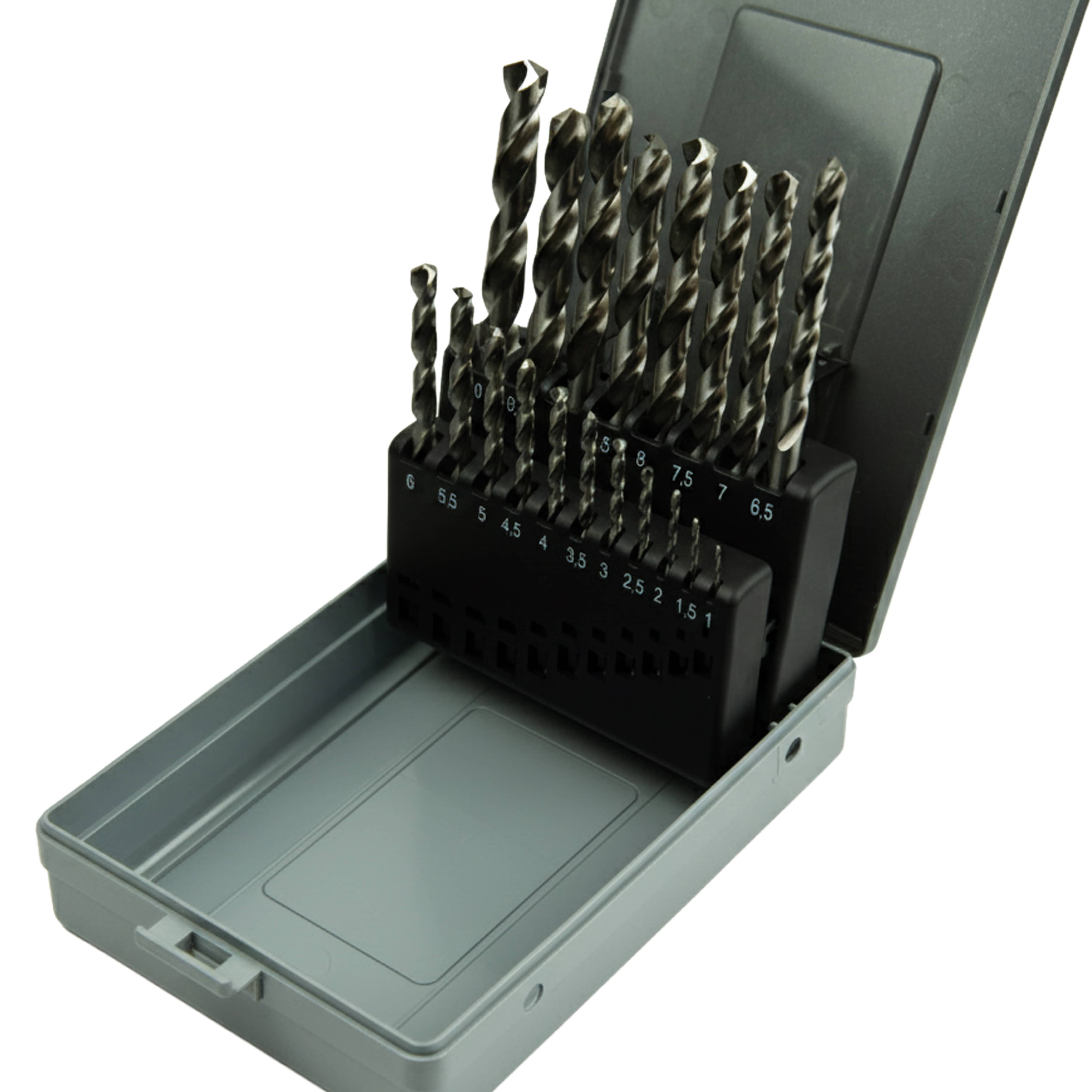 Die HSS-G Spiralbohrerkassette 19-teilig von 1 bis 10 mm bietet eine vollständige Auswahl an präzise geschliffenen Metallbohrern für professionelle Anwendungen. Alle Bohrer sind nach DIN 338 gefertigt, in Typ N Geometrie ausgeführt und eignen sich ideal für Stahl, NE-Metalle, Aluminium und viele weitere Werkstoffe.