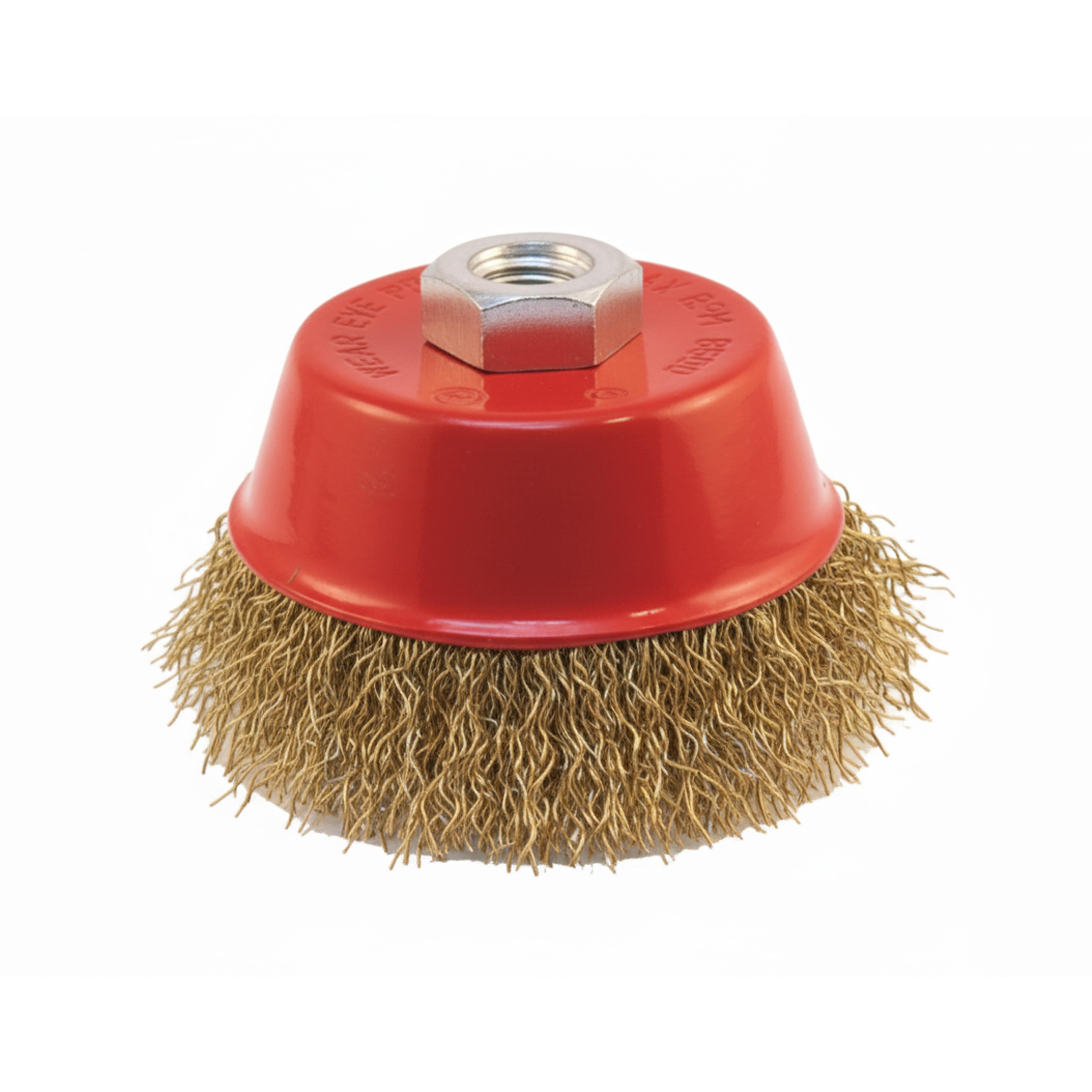 Die Topf-Drahtbürste Ø 75 mm gewellt mit M14-Aufnahme ist eine leistungsstarke Reinigungs- und Entgratungslösung für den professionellen Einsatz. Sie eignet sich ideal zum Entrosten, Reinigen, Aufrauen, Entgraten und Entfernen von Farbe, Schmutz und Beschichtungen auf unterschiedlichsten Materialien. Perfekt für Anwendungen in Werkstatt, Metallbau, Maschinenbau, Industrie, Handwerk und Montagebetrieben.