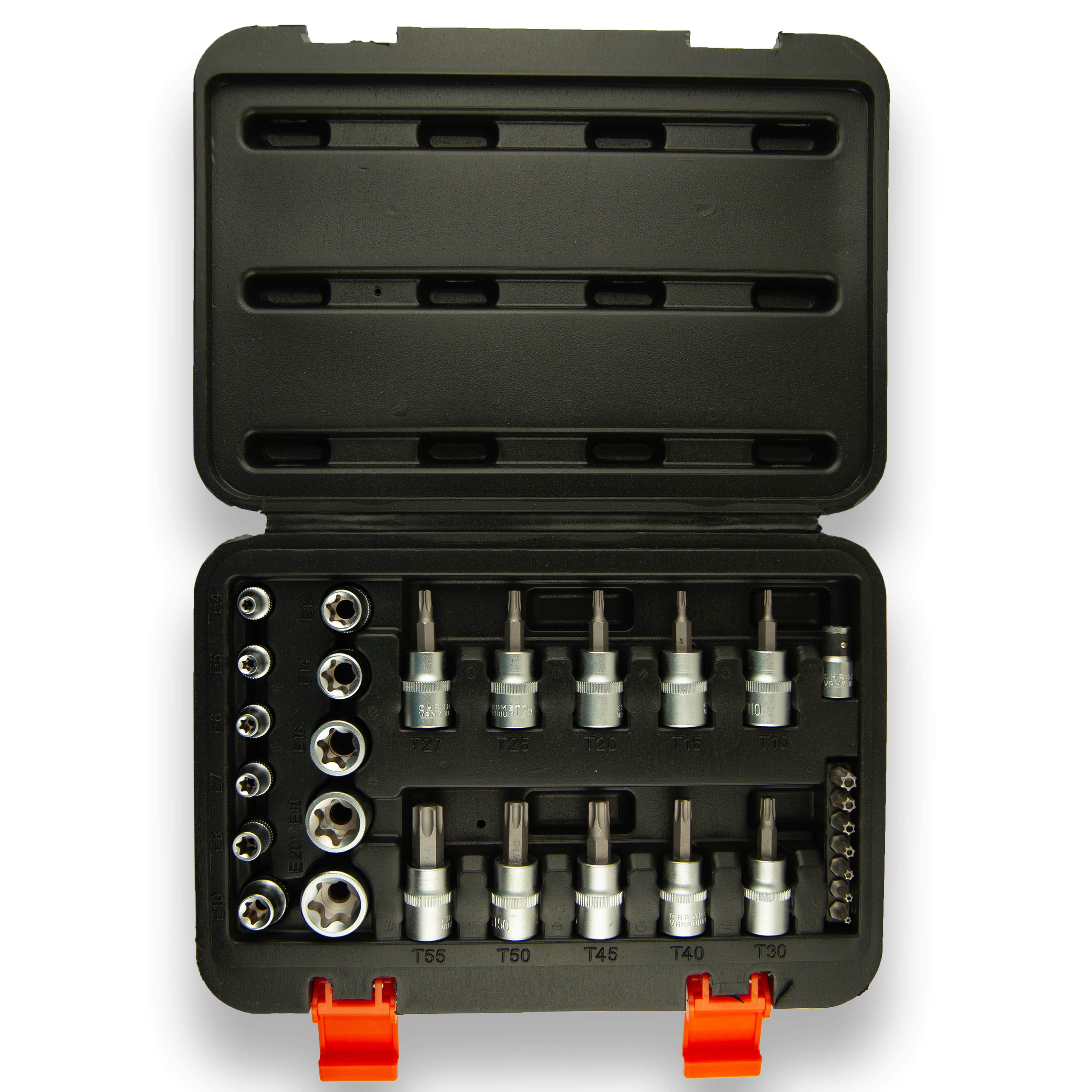 WorkPlus Steckschlüsselsatz 29-teilig – 1/4" & 3/8" – Torx, Vielzahn, E-Profil