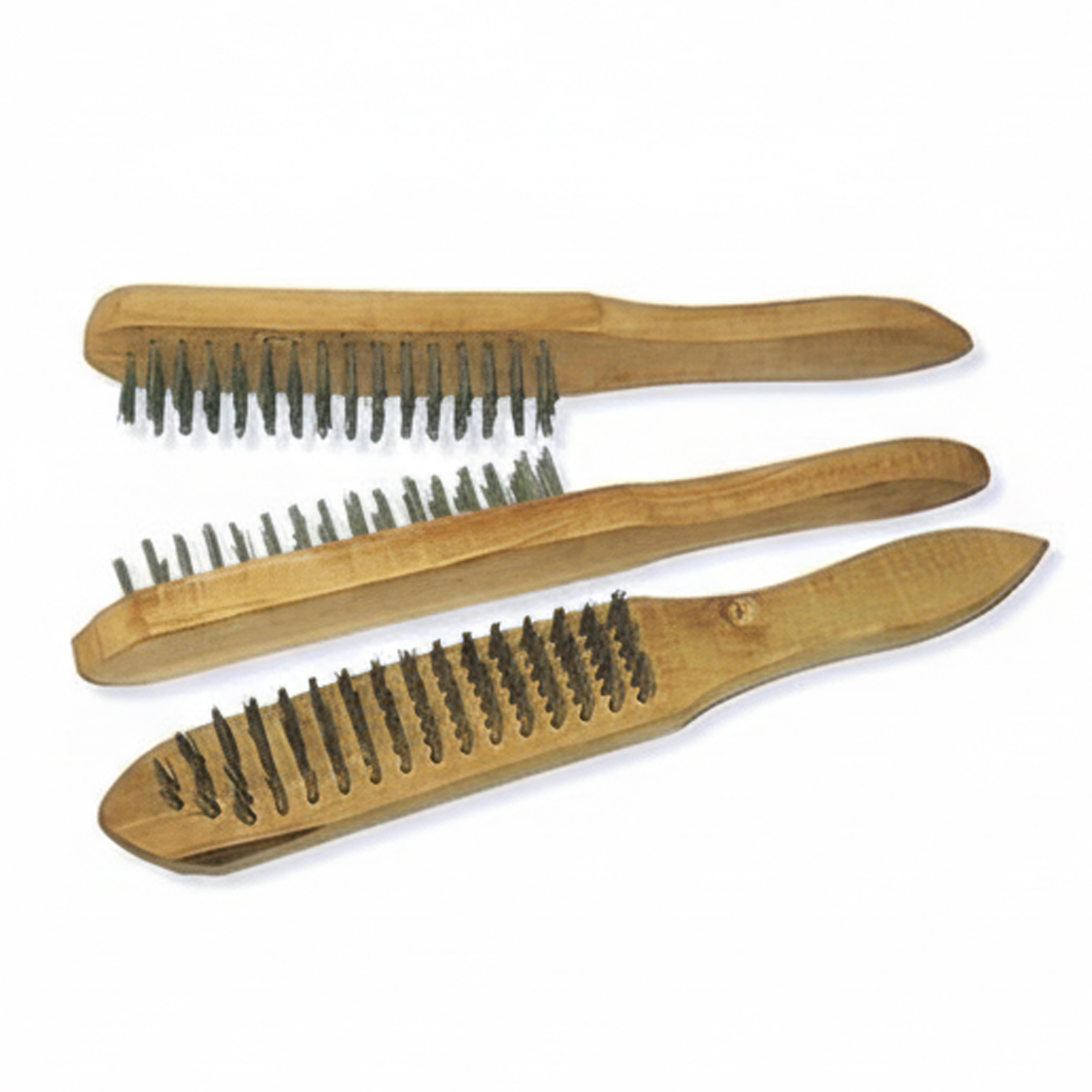 Dieses Drahtbürsten Set besteht aus drei unterschiedlichen Bürstentypen: 2-reihig, 3-reihig und 4-reihig. Die Bürsten verfügen über eine dünnere Drahtbestückung (siehe Foto) und eignen sich ideal für leichte Reinigungs-, Entrostungs- und Entgratarbeiten an Metall, Holz, Werkzeugen und Oberflächen aller Art.